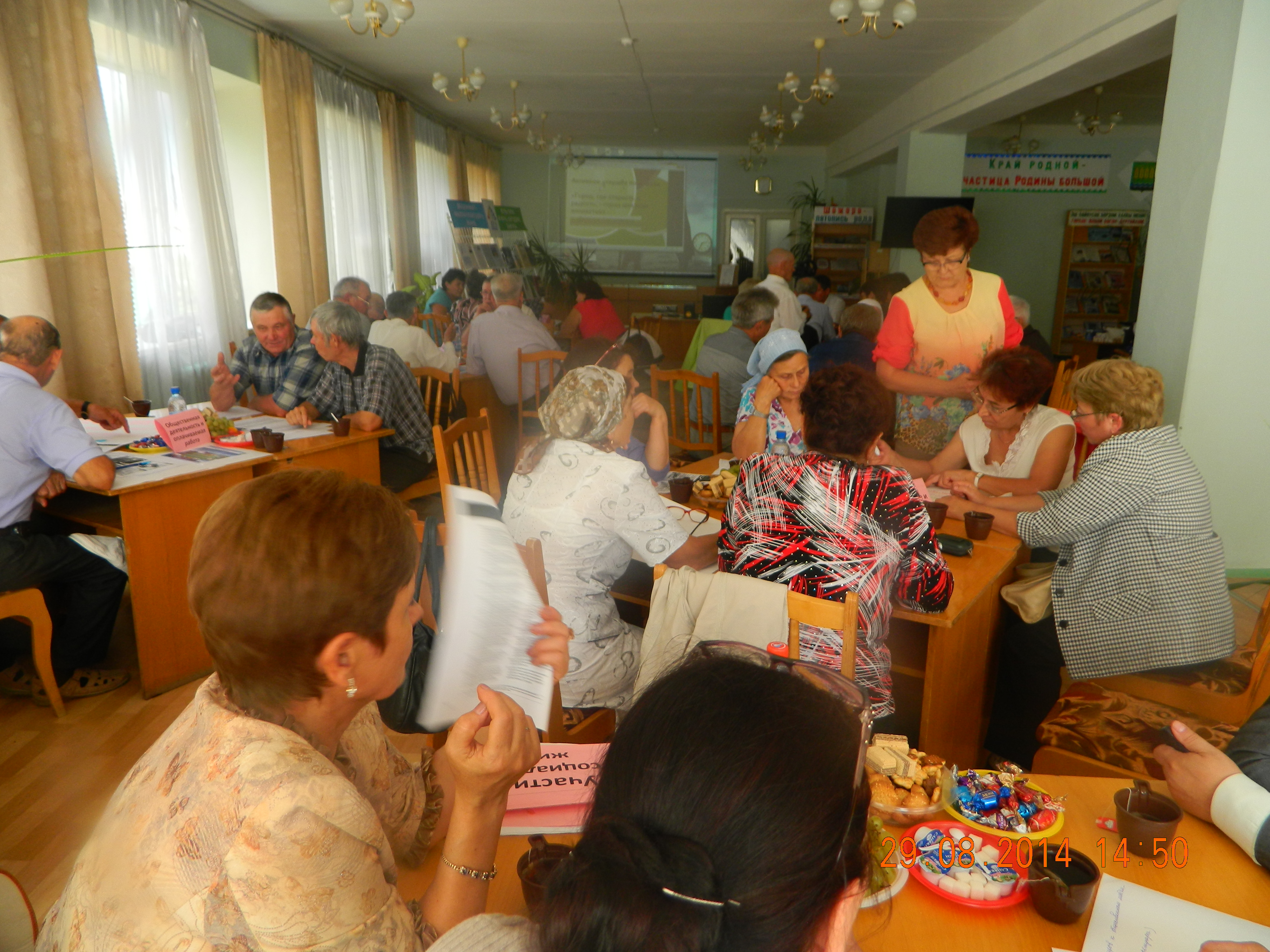 Семинар в Агидели начался с просмотра видеосюжетов о Проекте и организациии. Зам Председателя Правления Организации «Мои года — моё богатство» Закира Миннигалеева поделилась опытом работы в Туймазах. Координатор проекта «Город, где старость в радость» Афруз Миннигалеев ознакомил с процедурой проведения Мирового кафе. Обсуждения шли за чашкой чая. Никто не остался равнодушным, стараясь отразить наиболее острые проблемы. Пенсионерка Фанзиля Гараева отметила хорошую работу соц.работников и в то же время выразила недовольство медицинским обслуживанием в городе.